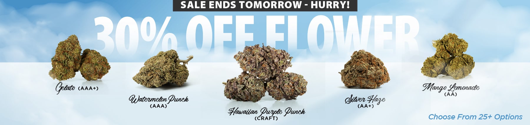 The more you spend, the more we love to spoil you! Select your freebies, from pre rolls and gummies to hash and shatter, all the way up to free ounces, at the cart page before checking out.