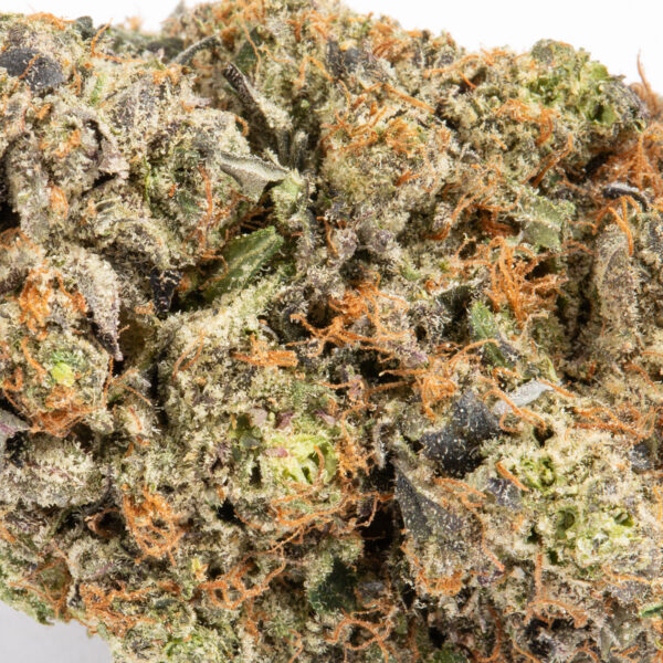 Double Purple Afgooey, also known as “Double Purple Afgoo,” is an indica dominant hybrid strain (70% indica/30% sativa) created through crossing the classic Afgooey X Double Purple Doja strains. Famous for its gorgeous appearance and super potent high, Double Purple Afgooey is the perfect powerful indica for any discerning patient. This bud has eye-catching fat spade-shaped dark olive green nugs with deep purple undertones, thin orange hairs and a super frosty coating of chunky, deep purple-tinted white crystal trichomes topped with sweet, sticky resin. As each frosty little nugget is broken apart, aromas of sweet fruity grapes, pungent dank and heavily spicy hash are released, intensifying in potency as the nugs are burned away. The flavor is on the lighter side, with a spicy hash overtone accented by rich grape wine and a touch of earthiness.